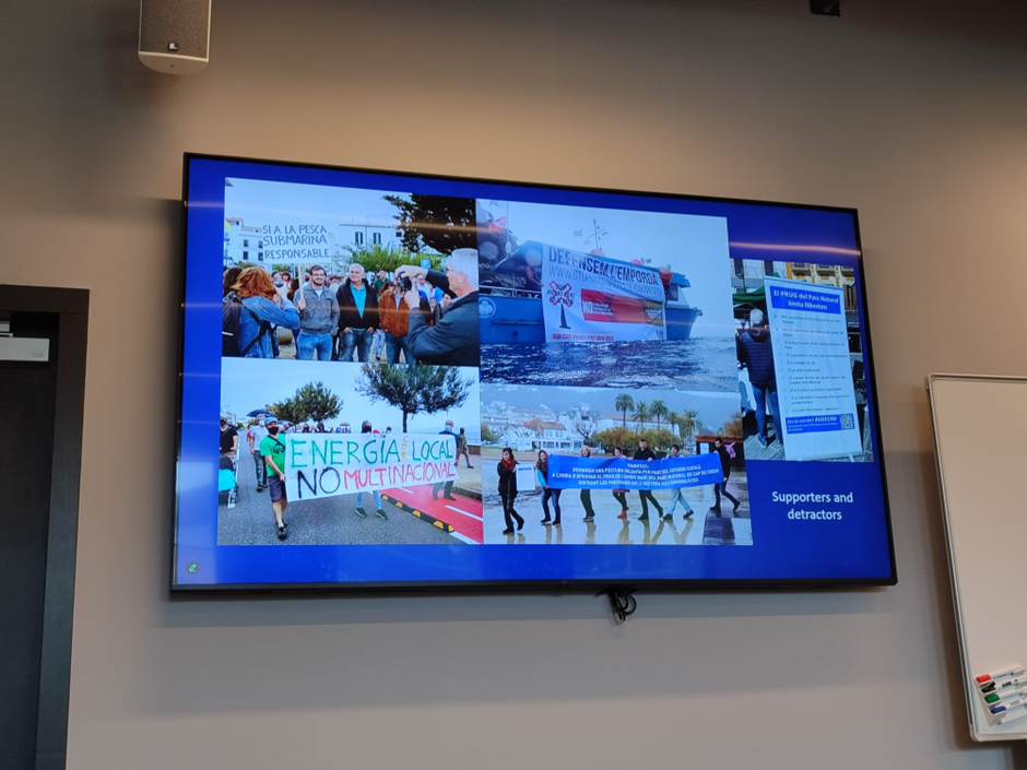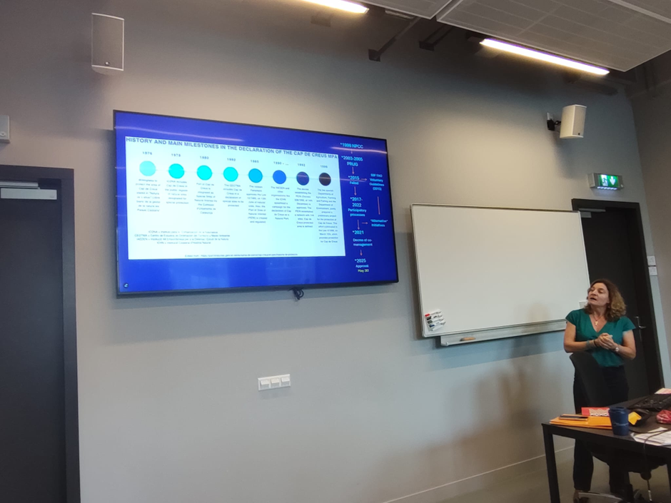 The event featured five thought-provoking presentations covering a range of themes — from engaged blue economy research (Miquel Ortega), shipbreaking and waste production (Irmak Ertör and Ekinsu Devrim Danış), and small-scale fisheries governance models linked to blue degrowth (Embla Ekström), to policy incoherencies in EU marine governance (Maria Hadjimichael, Paulina Ramirez-Monsalve, and Jonas Kyrönviita), and collective action in Catalonia’s marine protected areas.